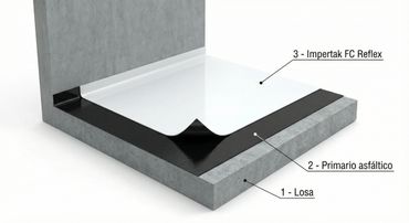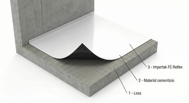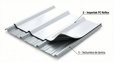 Impertak® FC Reflex es una membrana impermeabilizante autoadherible de bitumen modificado con una película reflectiva de fluorocarbono y otras poliolefinas, lo que proporciona una alta resistencia a la intemperie, los rayos UV, el envejecimiento y el clima inhóspito.